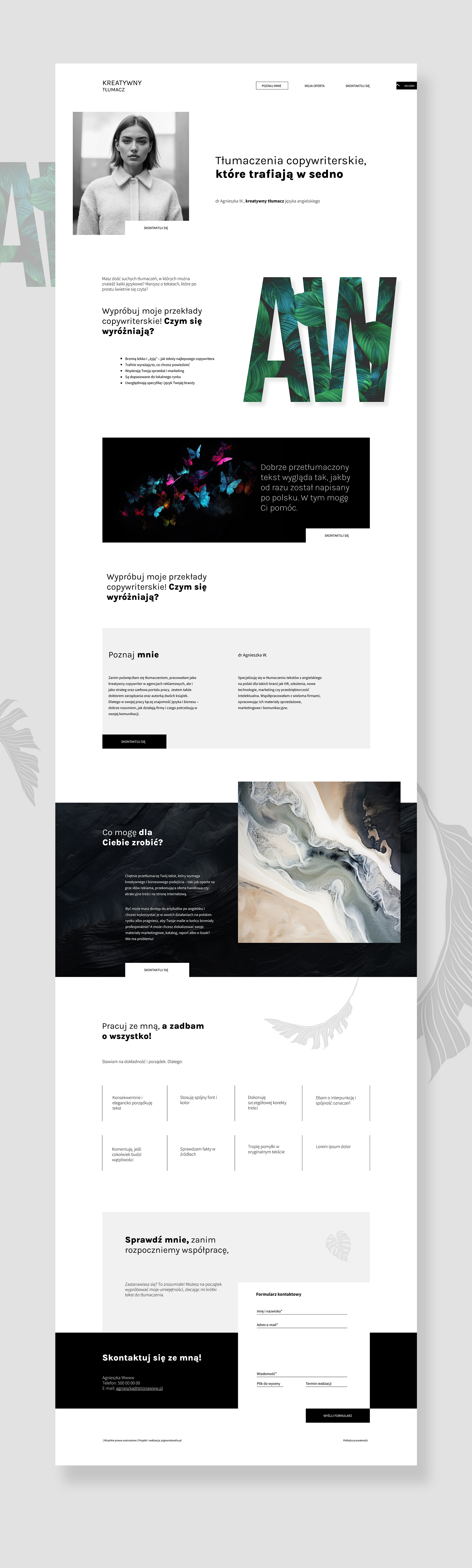 Pani Agnieszka zgłosiła się do nas z prośbą o przygotowanie nowoczesnej strony typu „One Page”, która będzie oddawała charakter jej działalności oraz opisywała zakres usług.